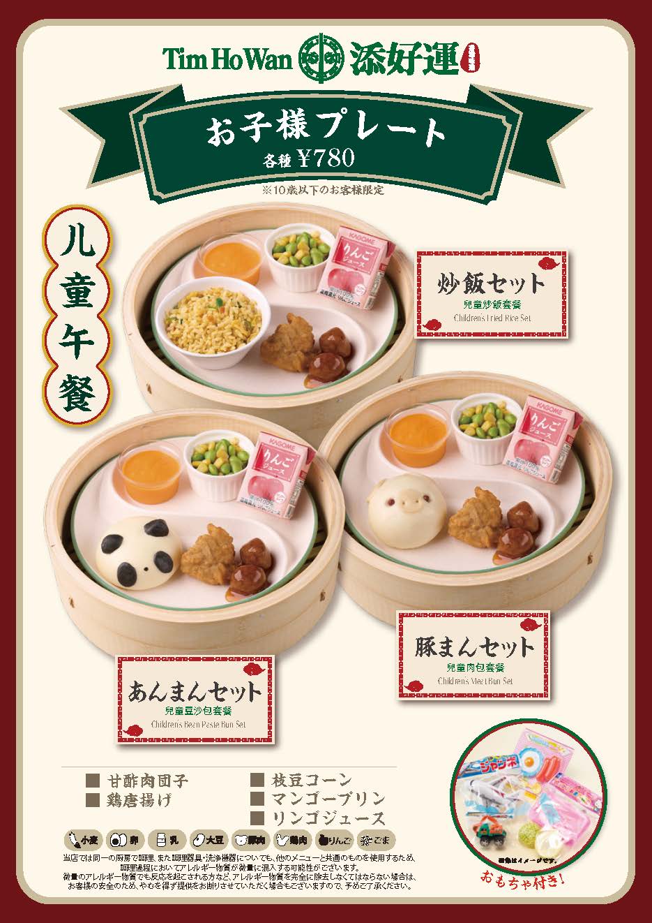10月のオープンに際しては、グランドメニューを改定し、先行スタート。これまで期間限定メニューとして登場したものや、レギュラーメニュー復活アイテムを含む、全9品の新メニューをラインナップし、「日常的な気軽さで、一流の味を」という添好運のブランドコンセプトを、さらにわかりやすく、さらに豊かな利用シーンで楽しんでいただいています。また、ファミリー層のご利用がメインであるという施設特性に合わせ、キッズセットとして「お子様プレート」(3種)を提供しています。